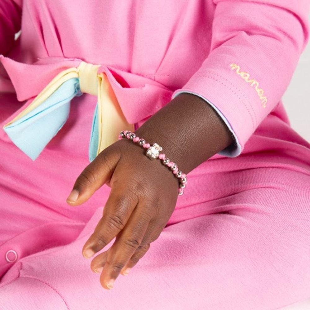Il bracciale con l'orsetto Tato dai piccoli nodini e perline d'argento, addolcisce il polso del tuo bambino/bambina. Nel colore rosa.Colore: ARGENTOComposizione: argento 925 e cotone