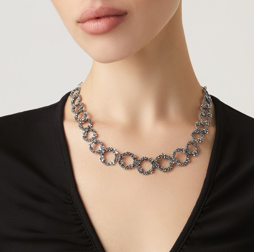 Eleganza leggera e delicata da indossare in ogni occasione. La collana Millefiori è un capolavoro di artigianalità in argento brunito, in cui i minuscoli e graziosi petali in argento scintillano grazie alla tecnica della diamantatura.DettagliArgento 925Lunghezza 49 cmChiusura con moschettone con maglie di regolazioneFatto a mano in ItaliaSKU:11694