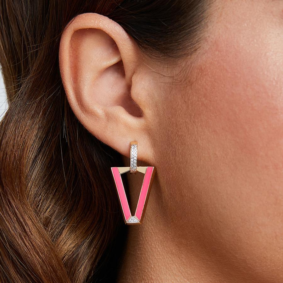 Mono orecchino, realizzato in argento 925/1000.Diametro cerchio di 1 cm. Pendente lungo 2,4 cm.Peso totale 3,4 gr.Placcatura in oro. Smalto fucsia.Pavè di zirconi bianchi.Made in Italy.Accompagnato da confezione e garanzia ufficiali Valentina Ferragni Studio.