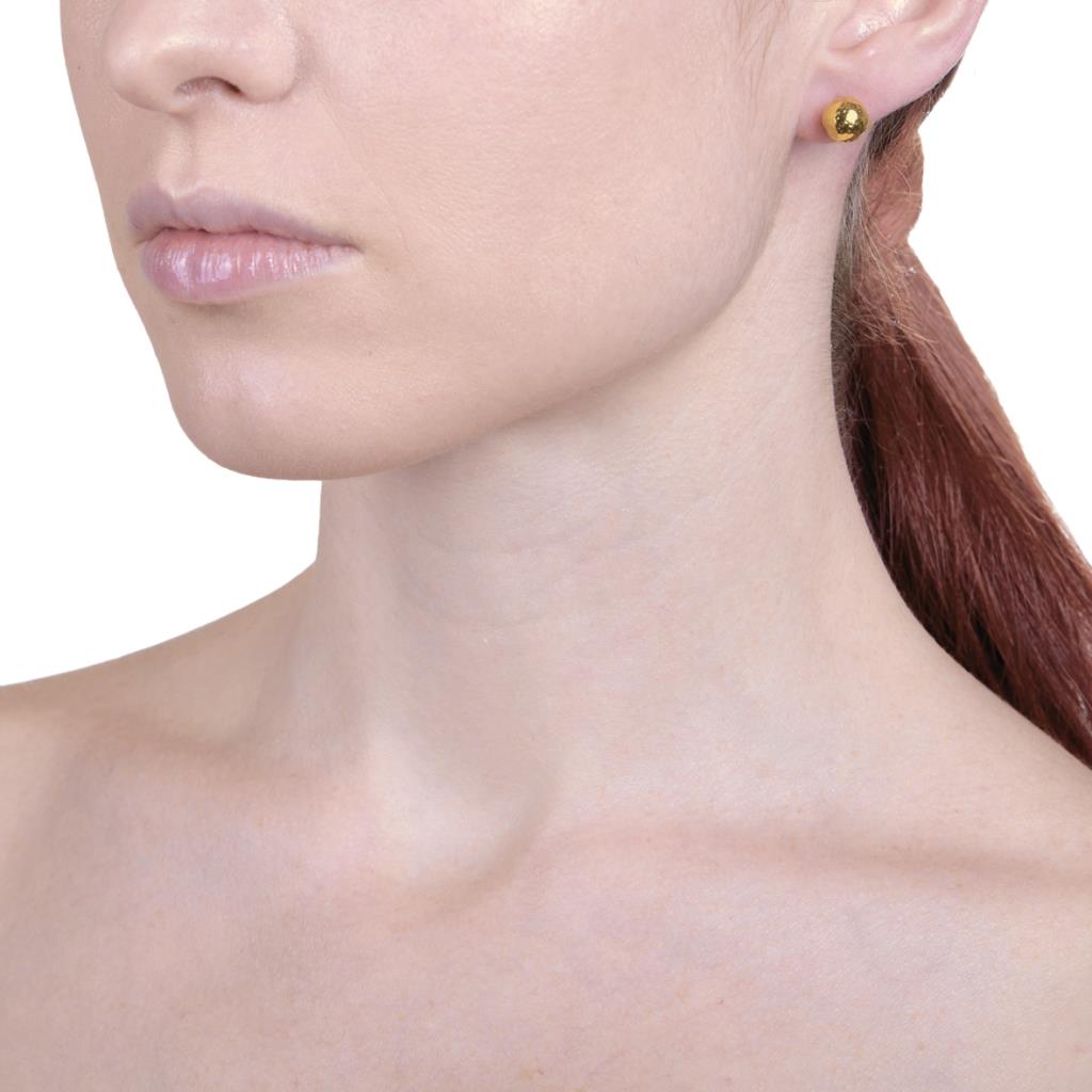 Orecchini in Argento 925 in bagno d'oro.Collezione Super Bowl - La luce è tutto. Bellezza iconica che illumina i volti. Riflessi cangianti su texture preziose, come bagliori di stelle lontane.Peso coppia orecchini: 2 gr.Diametro 0,8 cm.Chiusura con farfallina.Fatto a mano in Italia.