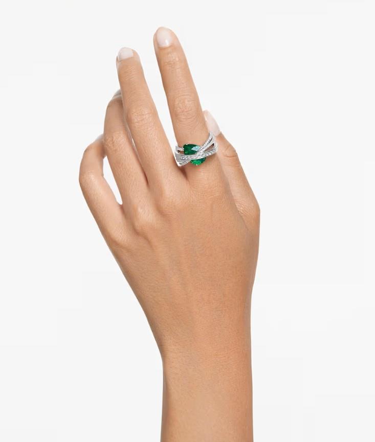 Questo squisito anello Hyperbola è incantevole da qualsiasi prospettiva lo si guardi. Il design placcato rodio presenta una spirale di quattro fasce, ciascuna decorata da un pavé di cristalli dai tagli misti. Una pietra verde dal taglio Pear, incastonata al centro del gioiello in una raffinata montatura a griffe, rivela una straordinaria attenzione ai dettagli . Indossalo con orecchini assortiti per un look dall’eleganza chic e audace.Articolo nr.: 5666959Collezione: HyperbolaMateriale: Ottone riciclato al 90%, Cristalli, Placcatura rodio, ZirconiaColore: Verde