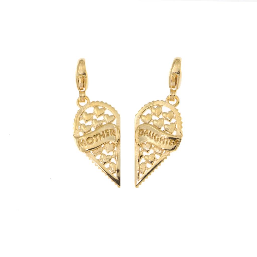 Doppio ciondolo separabile con scritta Mother and Daughter.Il primo regalo per la mamma in cui la sua metà è già tua.Soggetto: Cuore separabile con Mother - DaughterFinitura disponibile: Placcatura oro rosa 18kt o placcatura oro giallo 18ktMateriale: Argento 925Grandezza ciondolo: 1,5 cmFino al 9 Maggio per ogni Ciondolo Mum&Me ordinato, ricevi in omaggio un girocollo base semplice.
