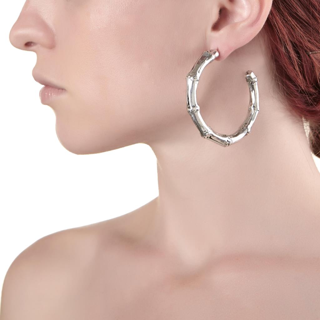 Orecchini in Argento 925Collezione Bambù - Si muove nel vento bisbigliando emozioni e bellezza. Il Bambù è come quell'amore che non si spezza mai.Peso coppia orecchini: 17 gr.Ø 5 cm. Chiusura con farfallina. Questi orecchini sono particolarmente leggeri perché realizzati tramite la tecnica dell'elettroformatura che permette all'oggetto di essere completamente vuoto all'interno.Fatto a mano in Italia.