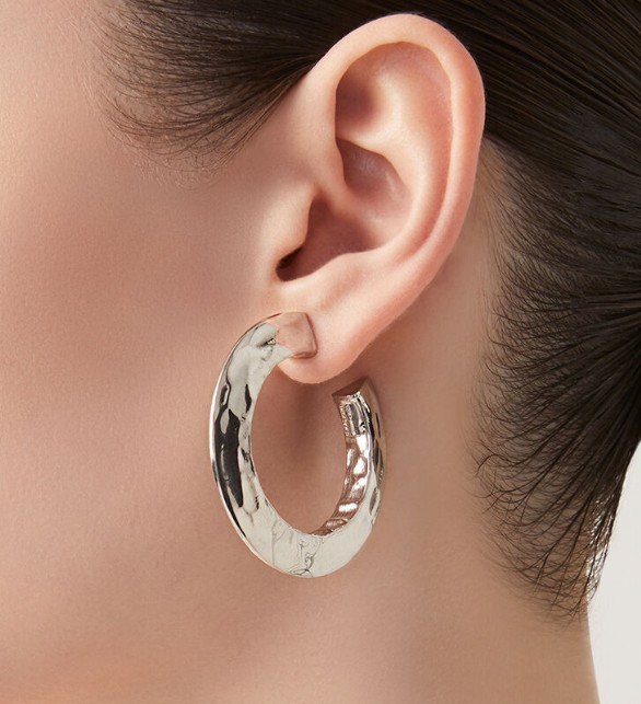 Gli orecchini a cerchio Blade esprimono il connubio ideale tra forza e contemporaneità nello stile Giovanni Raspini: l'argento martellato, ultra luminoso, incontra l'eleganza di forme decise, per chi ama un gioiello di forte personalità e dal segno essenziale.DettagliArgento 925Peso singolo orecchino 6,5 grDiametro 4,5 cmChiusura con farfallinaFatto a mano in ItaliaSKU:11777