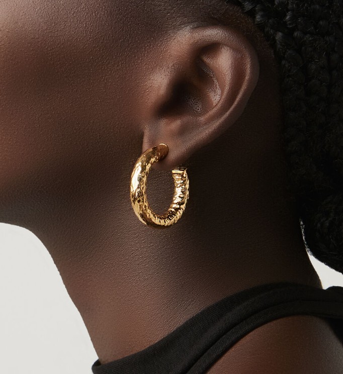 Essenziali, contemporanei, questi eleganti orecchini portano tanta luce al volto. L'argento martellato a mano regala texture che solo Giovanni Raspini sa realizzare.DettagliArgento 925 in bagno d'oro 18 ktPeso singolo orecchino 5,5 grDiametro 3,4 cmChiusura con farfallinaFatto a mano in ItaliaSKU:10337
