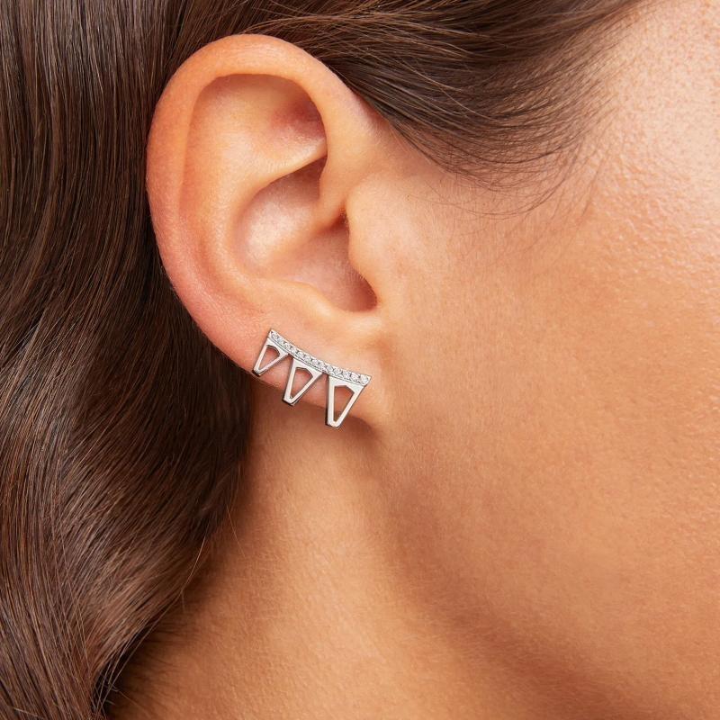 Mono orecchino a lobo della collezione Valentina Ferragni Elle Silver da donna. Colore: argento. L'orecchino singolo è in argento 925‰ con placcatura in platino caratterizzato da tre "V" impreziosite da un pavè di zirconi bianchi. La particolorità di questo mono orecchino è che, una volta indossato, copre una lunga porzione di lobo